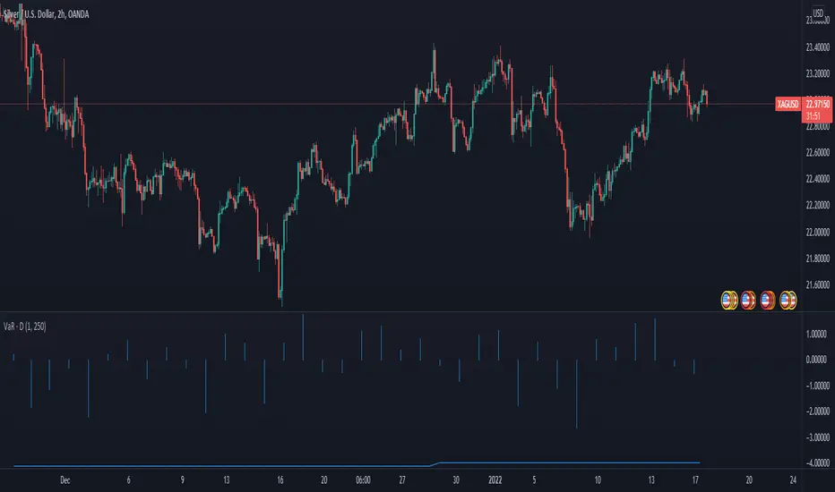 This script uses historical simulation method for the calculation of VaR. The default settings are 250-days period. 1 percentile (or 99 percentile confidence level.)