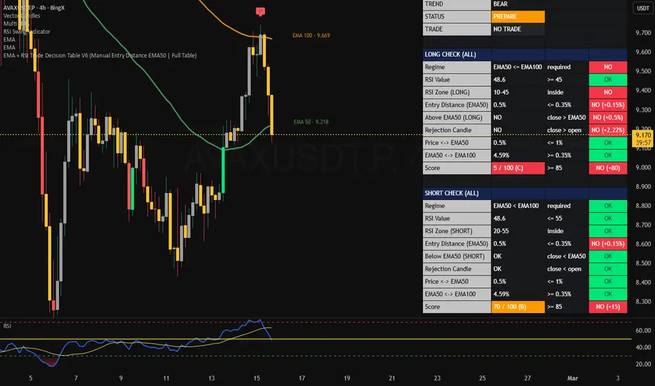 Aggiornato EMA + RSI Trade Decision Table V2