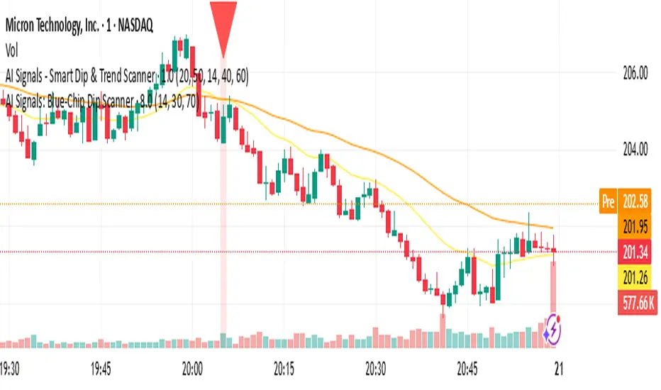 indicator("AI Signals: Blue-Chip Dip Scanner", overlay=true)