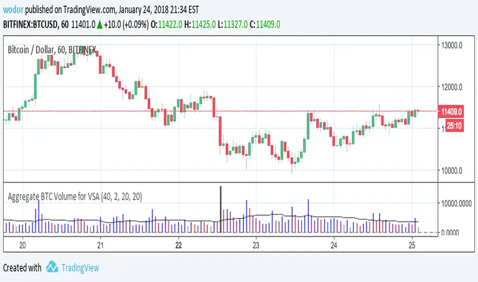 It adds volume from most popular BTC/USD exchanges to reduce the noise in data.