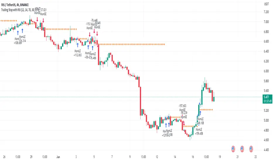 The Trailing Stop with RSI strategy combines momentum analysis and trailing stop functionality to help traders identify potential entry and exit points in their trading decisions. This strategy is suitable for various markets and timeframes.