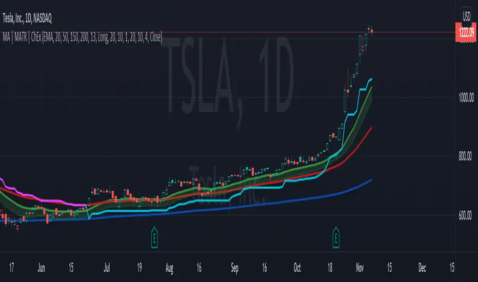 - This version updates the flexibility in tailoring the ATR period for both Moving Average less ATR, MATR, and Chandelier Exit, ChEx.