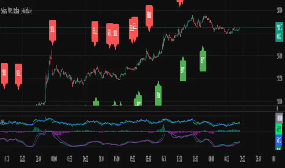 This indicator combines three different technical tools to provide more reliable entry signals: