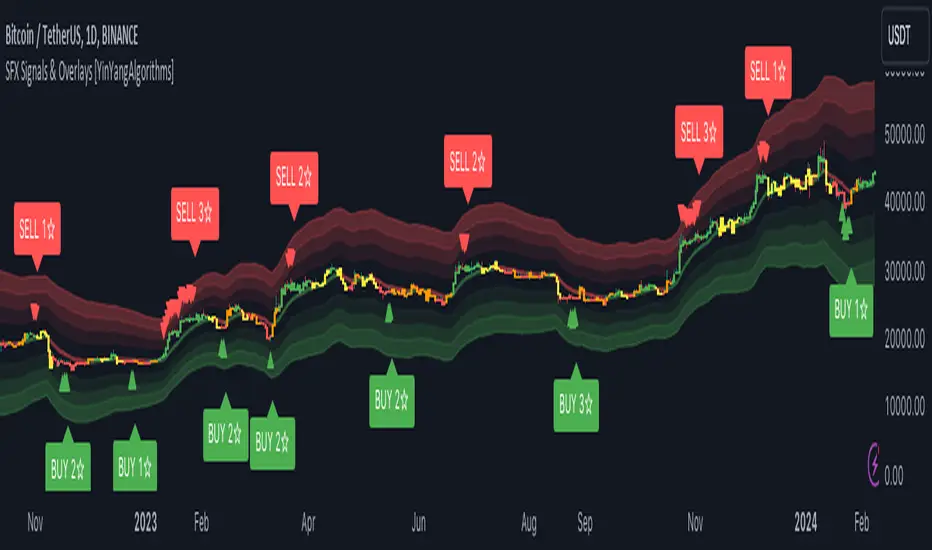 Buying & Selling at reversal signals may be profitable, however it may be less risky to DCA into your long / short positions during the Buy/Sell momentum signals instead. Let's get into the Tutorial so you can better understand how our SFX Signals & Overlays indicator works.