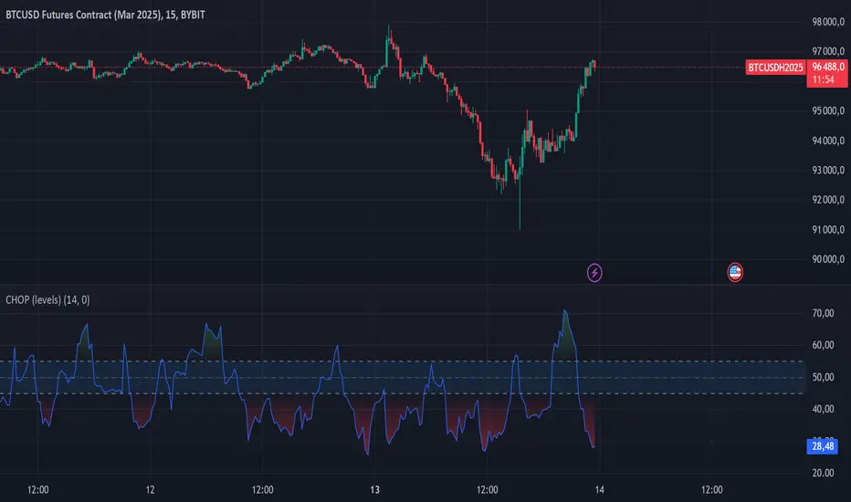 This enhanced visualization is ideal for traders who want a clear and intuitive representation of market choppiness, combined with visually striking gradient fills for quick analysis of market conditions.
