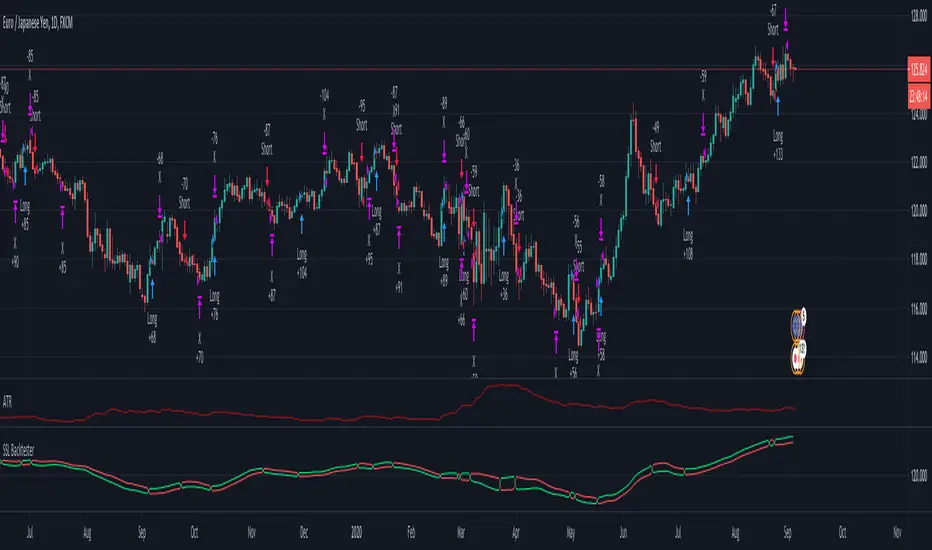 Similar to other SSL Channel scripts, but this one allows you to set an ATR-derived stop loss and adds the option to risk a % of the equity or used a fixed lot.