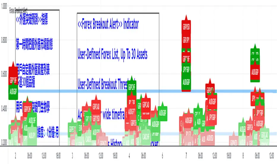 【外汇资产突破预警】指标绘制一系列外汇资产的突破事件,提供突破预警