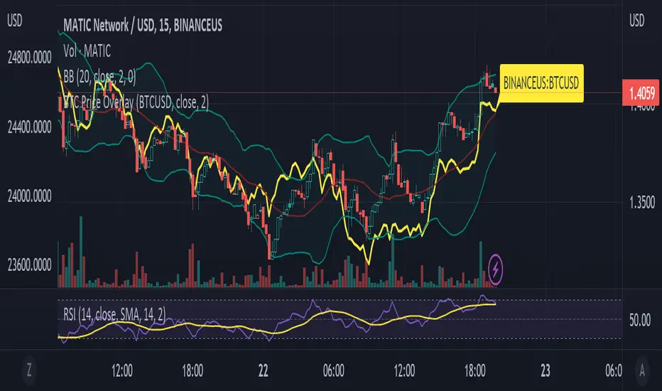 This is not a crazy strategy like most of the code I write. It's a simple overlay so you can drop BTC on top of whatever chart you are watching. It will track BTC's price on Binance.us (though the exchange is changeable with a few lines of code, maybe I will make it a dropdown on the next iteration of this.)