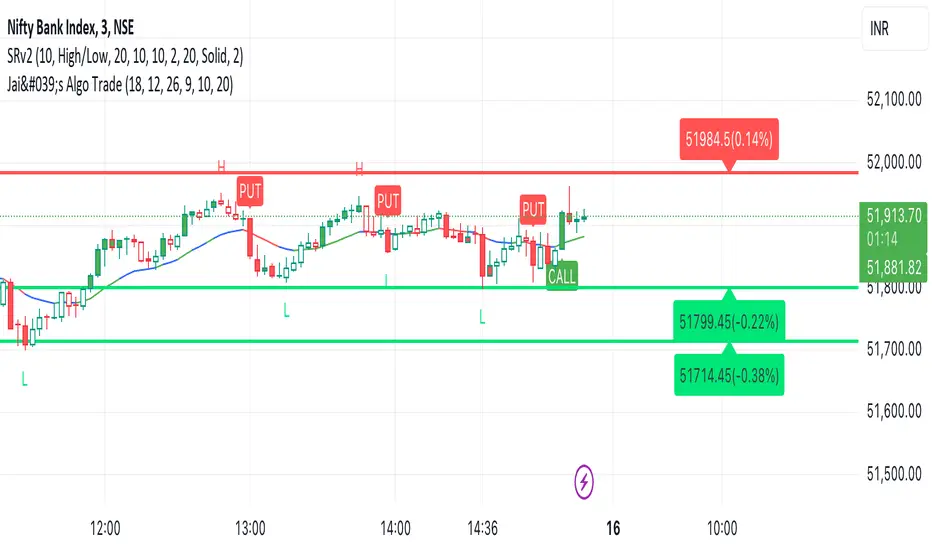 Jai's Algo Trade Indicator is a sophisticated trading tool designed to enhance your trading strategy by combining the strengths of two widely-used technical indicators: the Exponential Moving Average (EMA) and the Moving Average Convergence Divergence (MACD). This synergy provides a robust framework for identifying market trends and potential trade opportunities, making it ideal for both novice and experienced traders.
