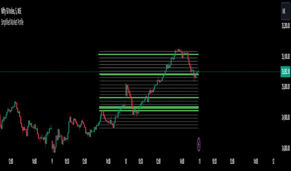 Plotting: The script visualizes the volume profile as lines plotted horizontally at different price levels, with thickness proportional to the volume traded at that level.