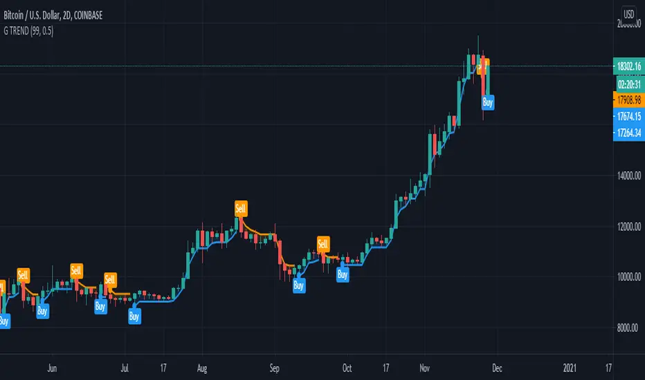 G TREND indicator follows trends based on higher open or close based on trend direction