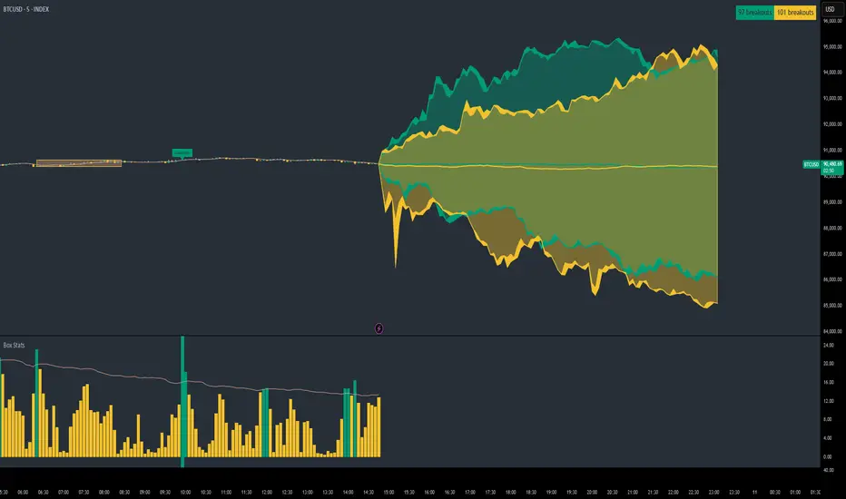 For the boxes themselves where breakouts come from I've included a simple filter based on the size of the box in ATR or %. This will filter out all the boxes that are larger top to bottom than the ATR or % value you setup.