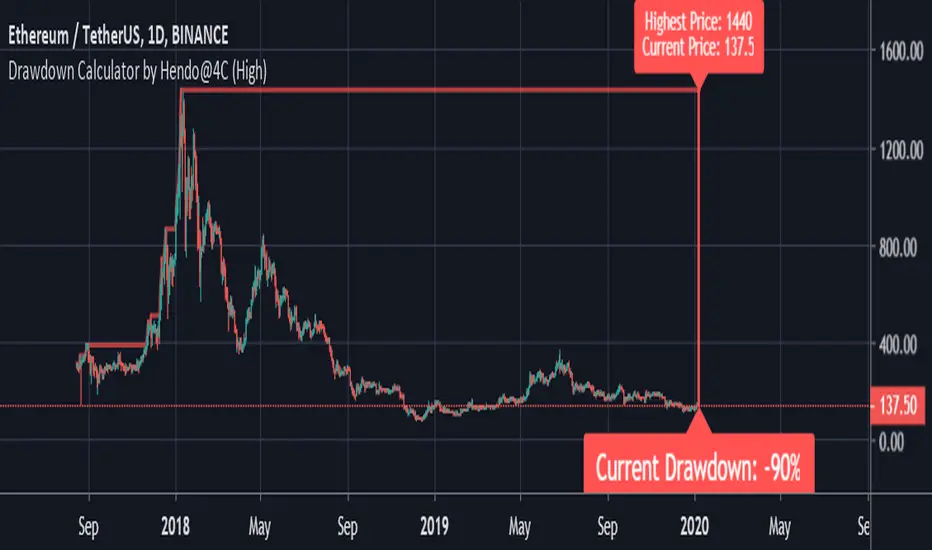 A basic script that automatically calculates and plots the drawdown between the highest high (or open/close) and the current price.