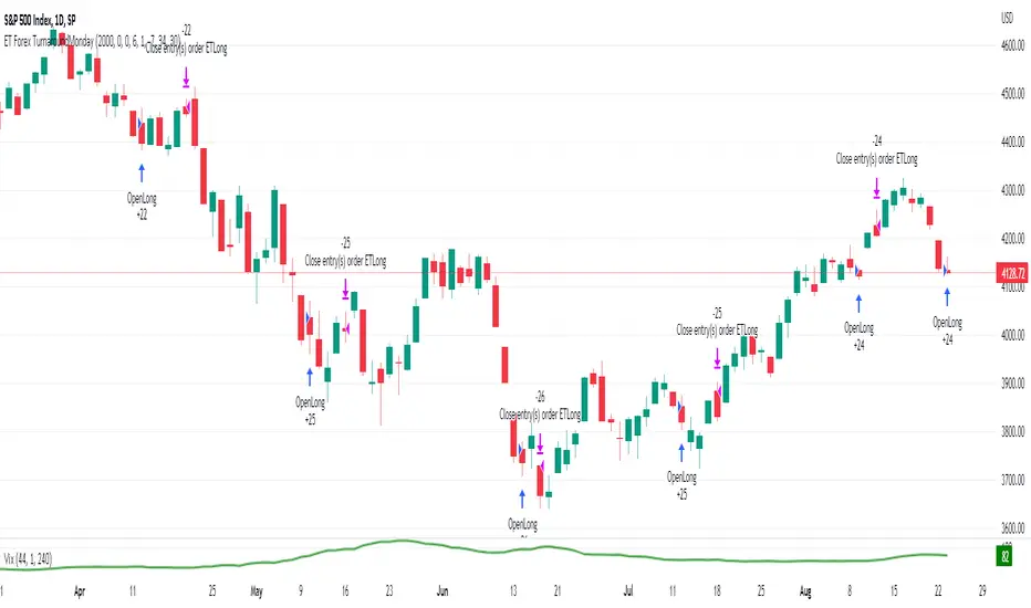 ET TurnaroundMonday - two red bars, on Monday go long and exit when close > yeasterday High