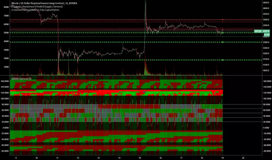 ⏲Inside each larger "band" there are smaller rows. Each of these small rows represents one timeframe (30m, 60, 2h, 4h, etc) What timeframes you choose for them is completely configurable althought the current setup is already ideal to trade on 15m