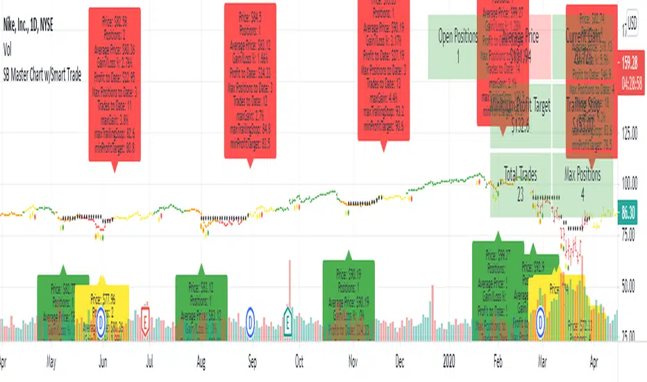 This version of SB Master Chart w/Smart Trade has additional money management parameters to help you dollar cost average in and out of a trade.