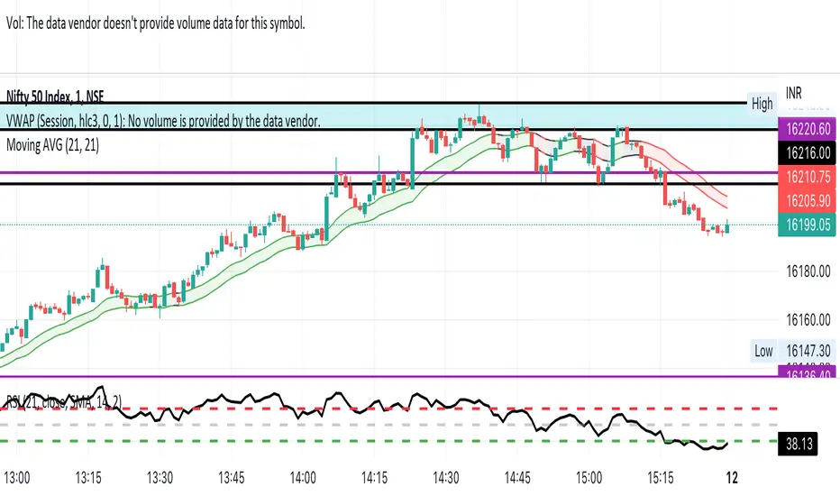 This is the 21 EMA Band Which follows the chart for the last 21 Average High and Low Prices of the Candle with Integrated RSI. This is a Colourful Band When Market is in Uptrend it shows Green, Market is Downtrend it shows Red and When Sideways Black.