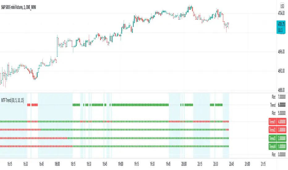 If current and 3 higher time frames are in the same direction, the dots at the top will appear.