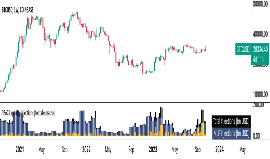 This PBoC Liquidity Injections indicator tracks the major liquidity operations by the People's Bank of China - namely the Reverse Repo (RRP) and Medium-term Lending Facility (MLF).It can provide insights into China's monetary policy stance and serve as an indicator for risk assets: