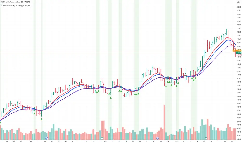 When the current closing price is within 50% of 20-days ADR% from these three EMAs, it would give you an alert signal.