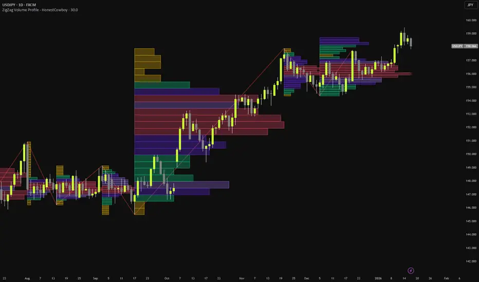 The ZigZag Volume Profile Indicator is a combination of 2 very popular trading indicators, the volume profile and zigzag indicator. Instead of using predetermined sessions like traditional volume profile analysis. This indicator expands on zigzag indicators "legs" and draws a volume profile inside each zigzag leg.
