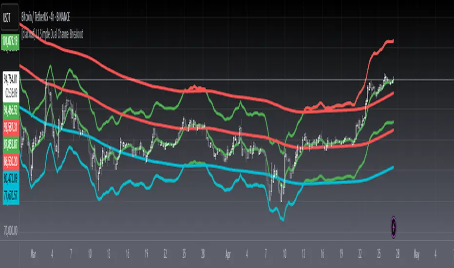 OVERVIEWThe L1 Simple Dual Channel Breakout indicator provides a comprehensive breakout strategy using dual channel analysis and moving averages. It identifies potential trading opportunities through price action and channel breakouts.