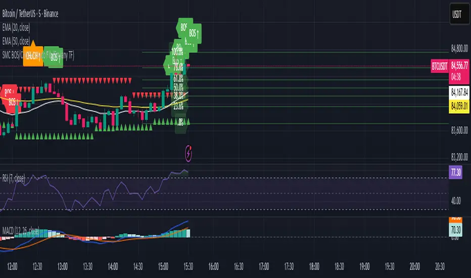 SMC BOS/CHoCH + Auto Fib (5m/any TF) durane