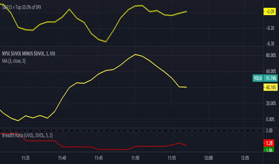 This indicator shows what the top 15 stocks in the SPX is doing in a chart form.