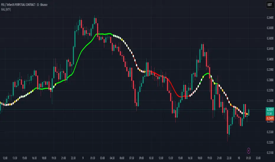 • Multi-Timeframe (MTF) Support: View the Adaptive Nexus Line from any timeframe directly on your current chart (e.g., plot the 4H line on a 15m chart) to get a better perspective of the higher-level trend.