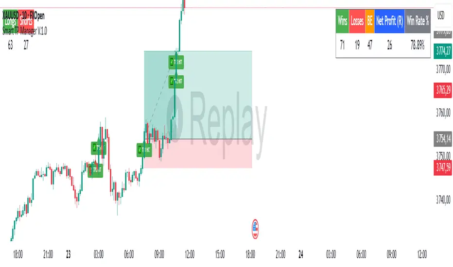 Smart TP Manager V01.1 – Trade Management ToolTake control of your trades and manage your risk effectively with Smart TP Manager, designed for traders on XAU/USD on TradingView.
