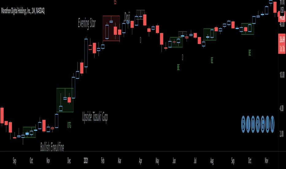 Patterns is a Japanese candlestick pattern recognition Library for developers. Functions here within detect viable setups in a variety of popular patterns. Please note some patterns are without filters such as comparisons to average candle sizing, or trend detection to allow the author more freedom.