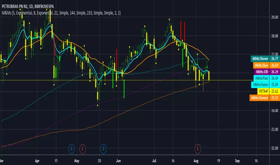The (M&Ms) Multiple Moving Average Crossing allows the investor identify trends in different time frames and indicates when to entry short or long.
