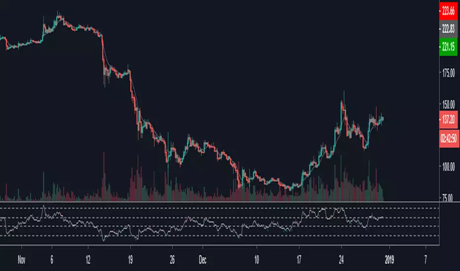 Relative strength index plotted with arrow up/down to indicate StochRSI crossovers.