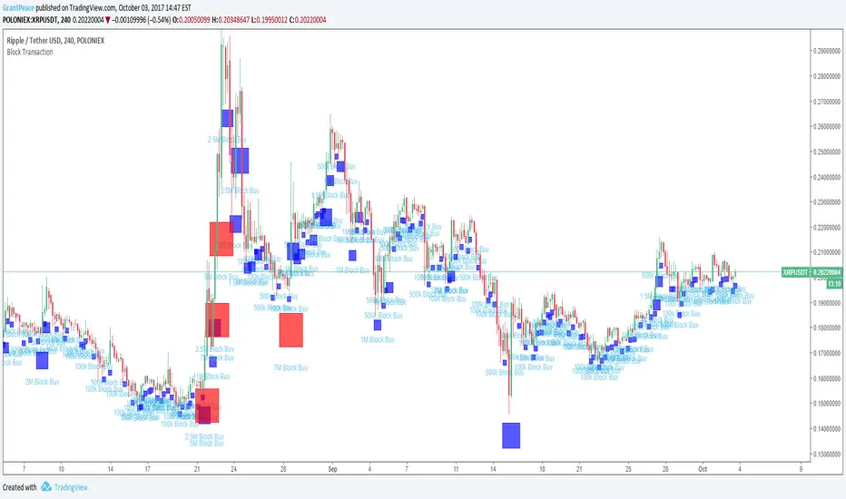 This indicator will identify block transactions within the range of 100k - 1 bn. If a block transaction larger than or the equivalent of