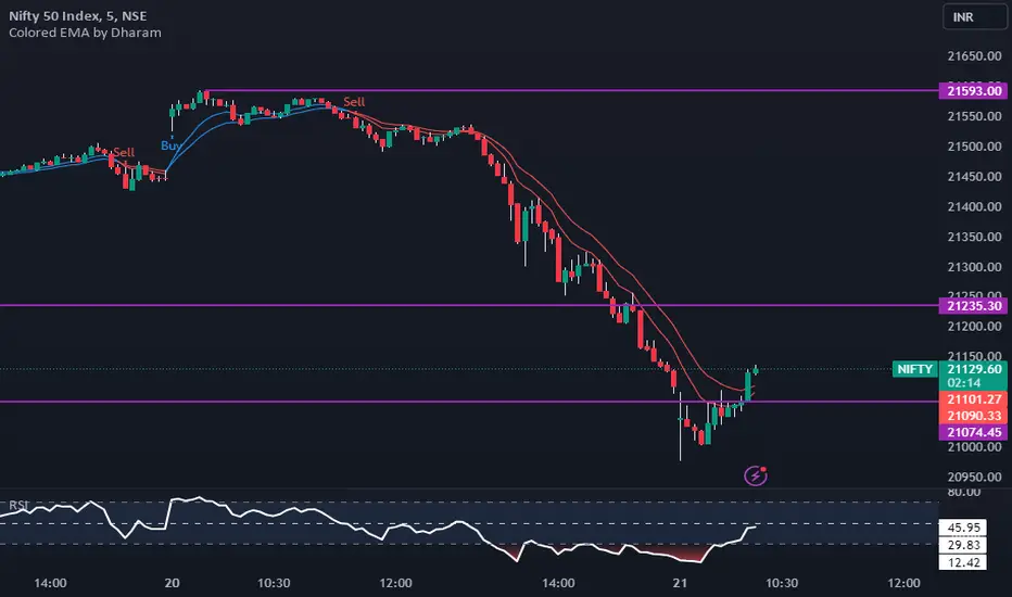 - and a bearish trend when EMAs color are Red. (Also added Sell signal for easy reading)