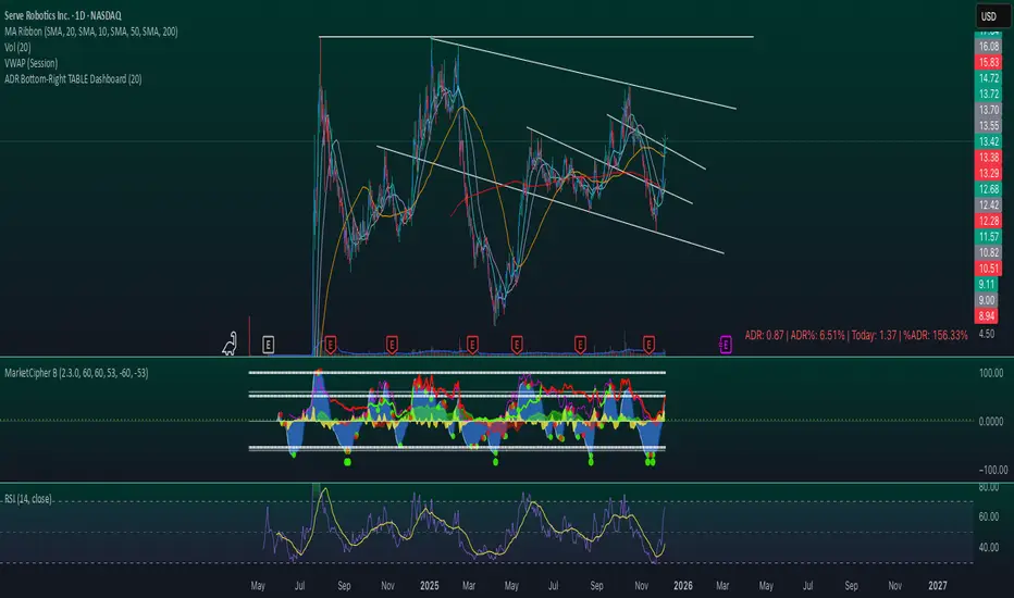 The ADR Bottom-Right Dashboard displays the Average Daily Range (ADR) and related metrics directly on your chart in a compact, easy-to-read table. It helps traders quickly see how much a stock has moved today relative to its normal daily range and identify potential overextended or trending moves.