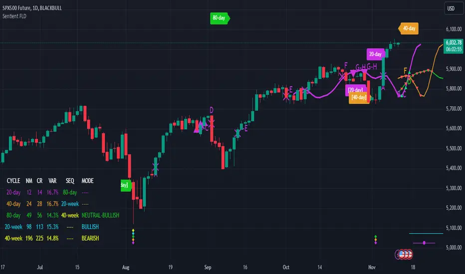 - The results of the cycle analysis are also displayed on your chart in a table, and enable you to understand at a glance what the current mode of each cycle is, whether bullish, bearish or neutral.