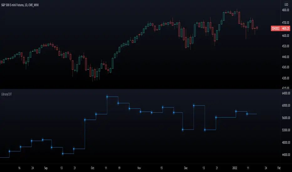 This library is a Pine programmer's tool that provides functions to access Commitment of Traders (COT) data for futures. Four of our scripts use it: