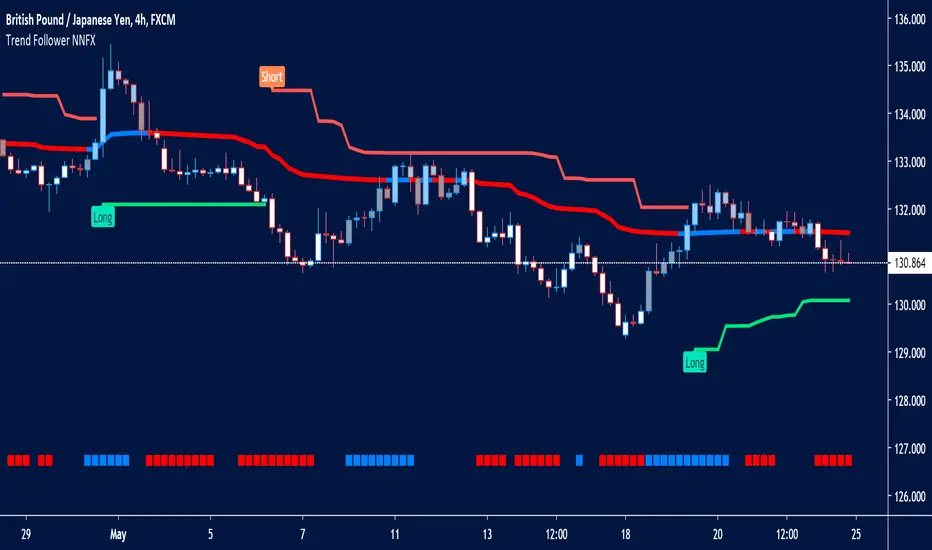 - Blue for longs, Red/White for shorts, Grey when in ranging periods.