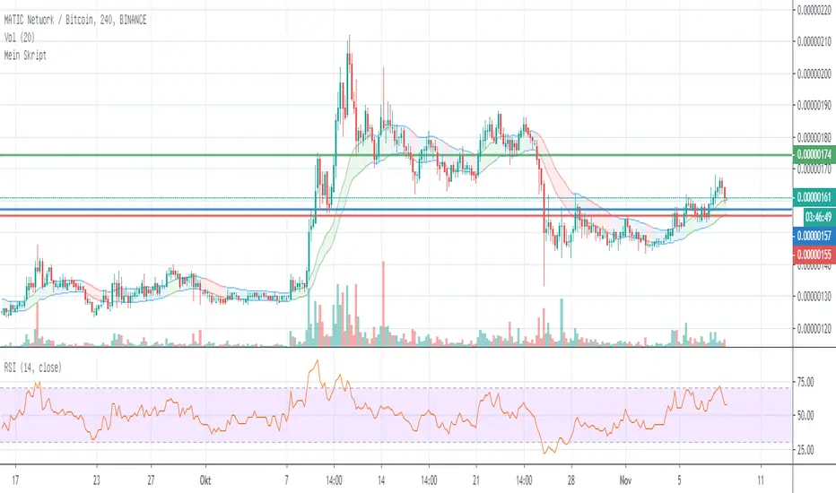 Simple Script to get a better view of trends. The colored band indicates if the market is in a trend or sideways action.