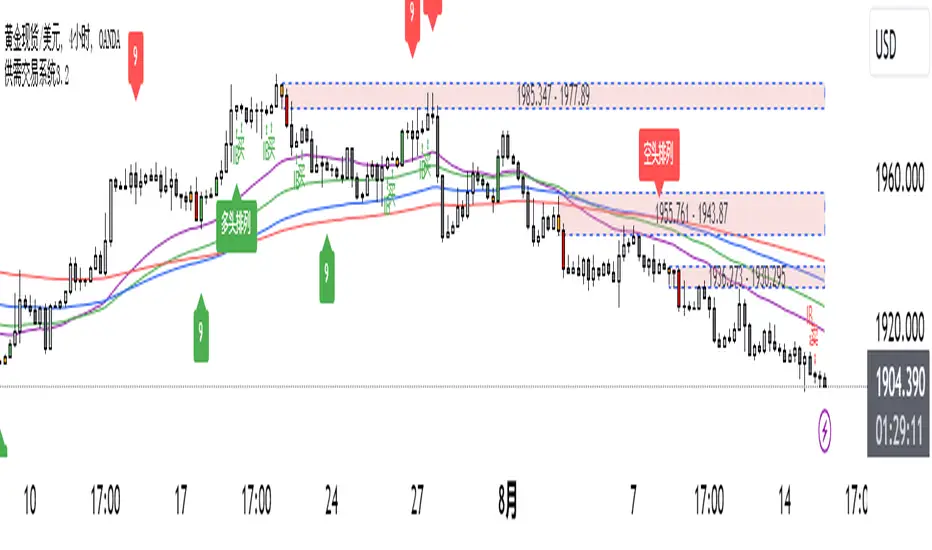 这个指标是一个升级过后的版本,在TV已经支持通过指标绘制矩形之后市场上出现了很多的指标,但我想我们的供需指标是市场上为数不多的供需指标,非常有实战意义。