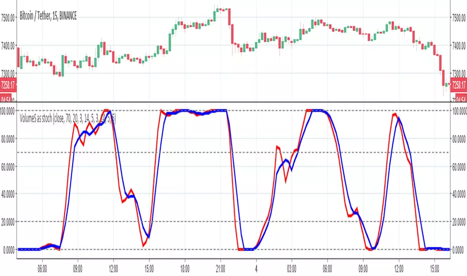 This volume indicator is my design. in this example we can use it as stoch but only this one based on pure volume .