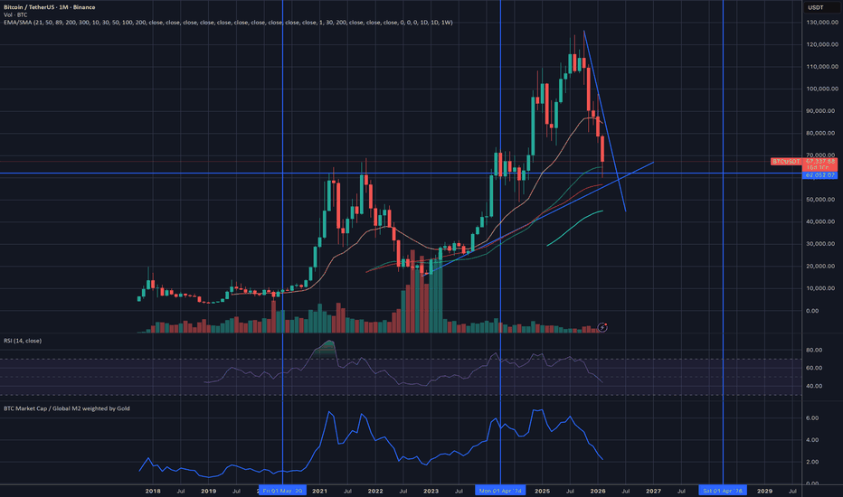 BTC Market Cap / Global M2 weighted by GoldThe market cap of Bitcoin divided by the M2 money supply of a collection of the worlds fiat currencies converted into USD and weighted by the price of gold.Indicatore Pine Script®di benloveslamp2