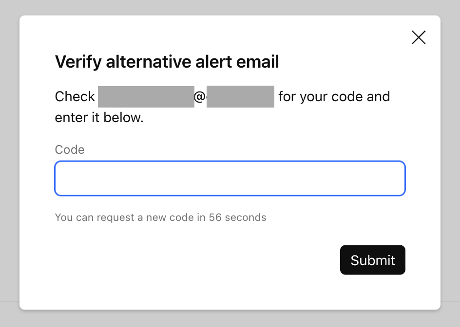 Dopo aver confermato con successo l'indirizzo e-mail alternativo, sarà possibile ricevere i messaggi sugli alert che si sono attivati a questo indirizzo.