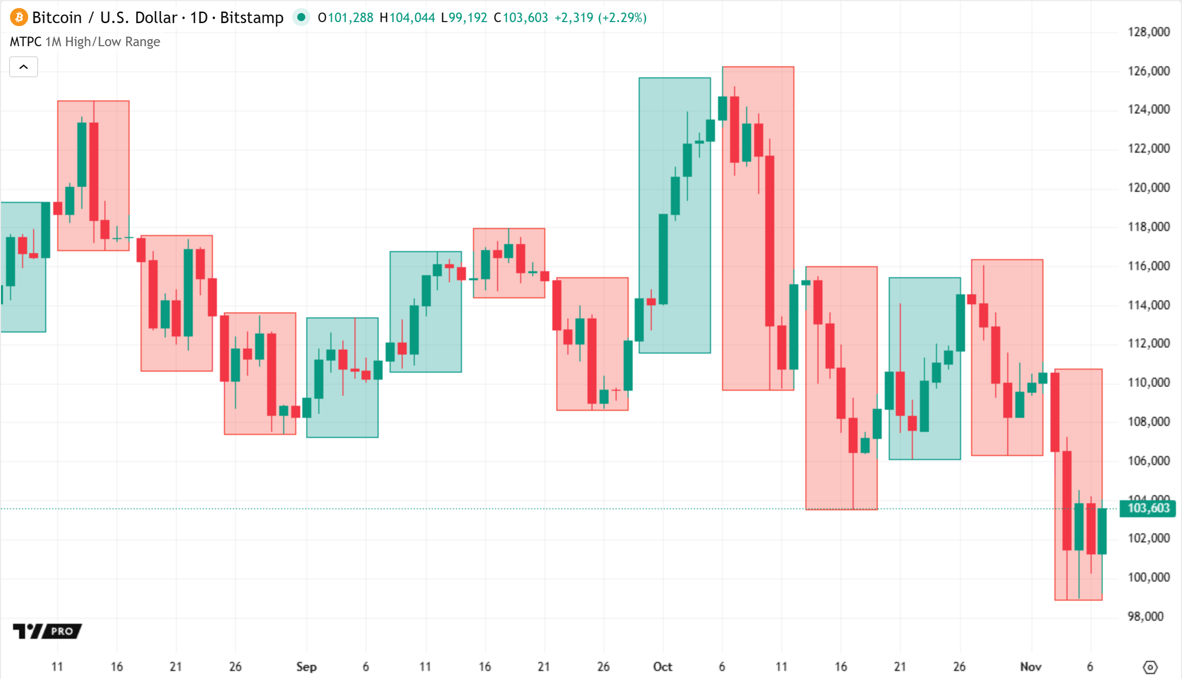 L'indicatore Grafici multi-timefram ("Multi-Time Period Charts", o MTPC) visualizza i dati delle barre dei timeframe superiori ("Higher timeframe", o HTF) direttamente sul grafico. Disegna riquadri con codifica a colori che rappresentano gli intervalli HTF in base ai prezzi standard o ai valori Heikin Ashi, consentendo l'analisi delle barre multi-timeframe senza la necessità di modificare il periodo o il tipo di grafico.
