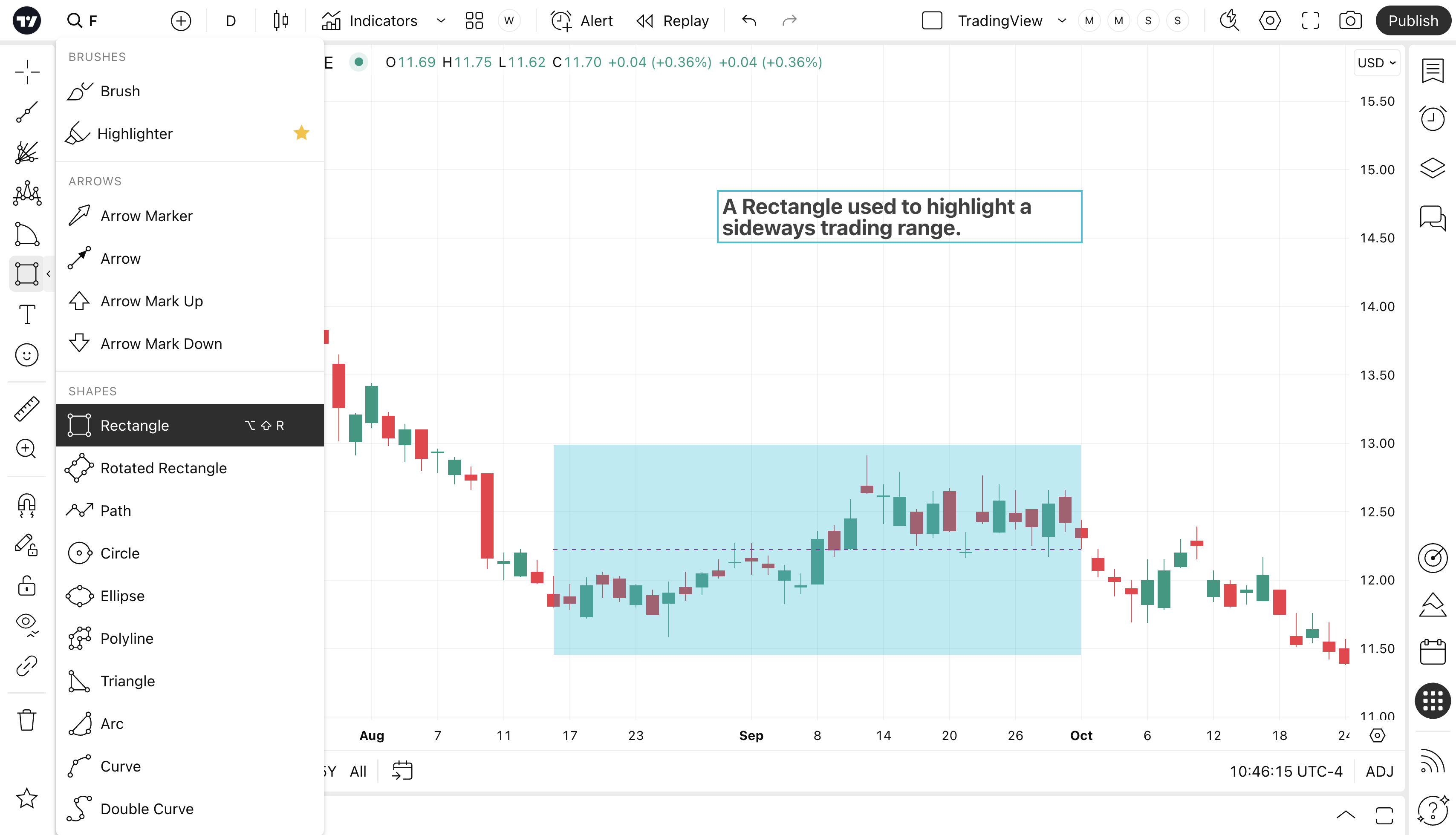 Un semplice strumento di disegno utilizzato per disegnare rettangoli su un grafico. In genere viene utilizzato per evidenziare aree di interesse.