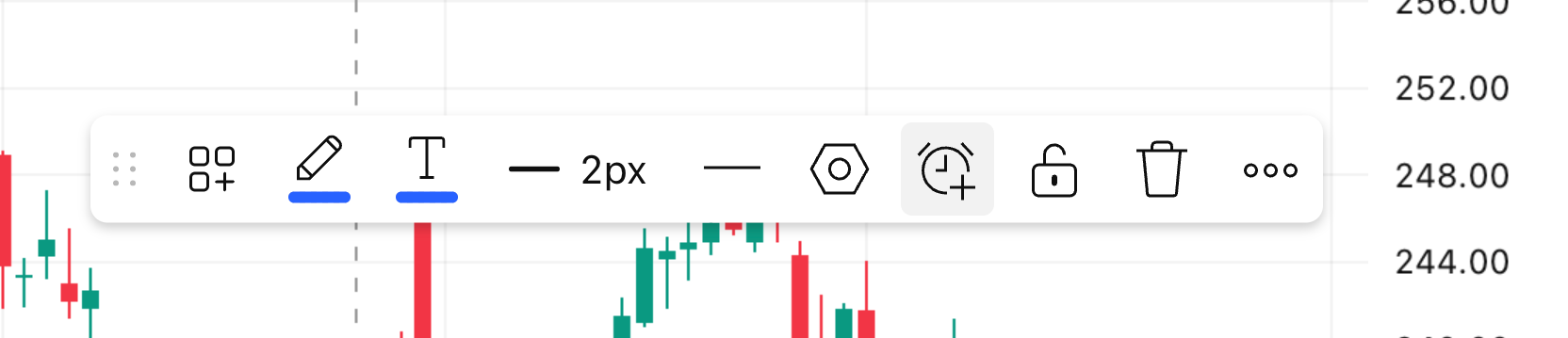 - Fai clic con il tasto destro del mouse su una linea o un canale per creare un alert per questi strumenti.