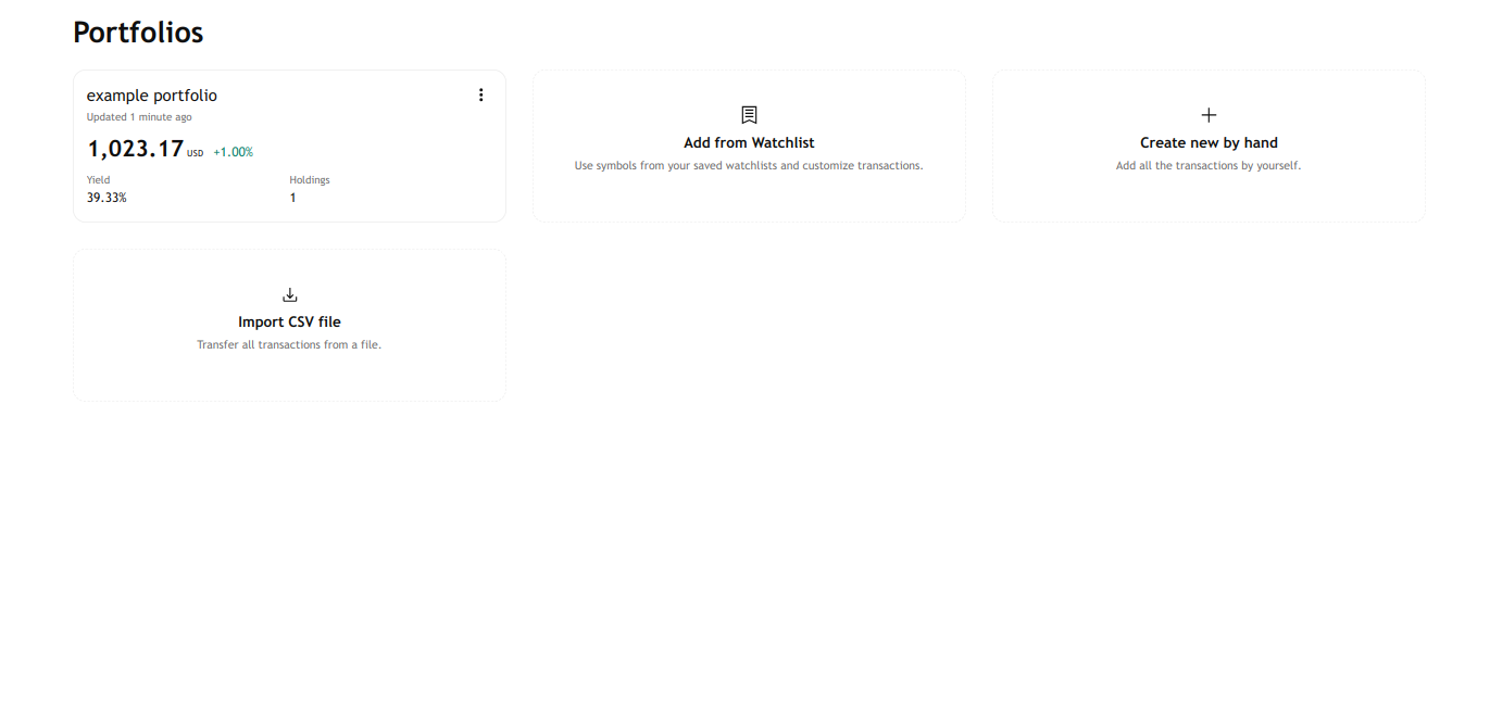 Schede per la creazione di un nuovo portafoglio