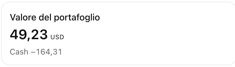 Riflette il valore totale attuale del portafoglio dell'utente nella valuta del portafoglio, tenendo conto della liquidità disponibile e del valore attuale delle posizioni aperte.