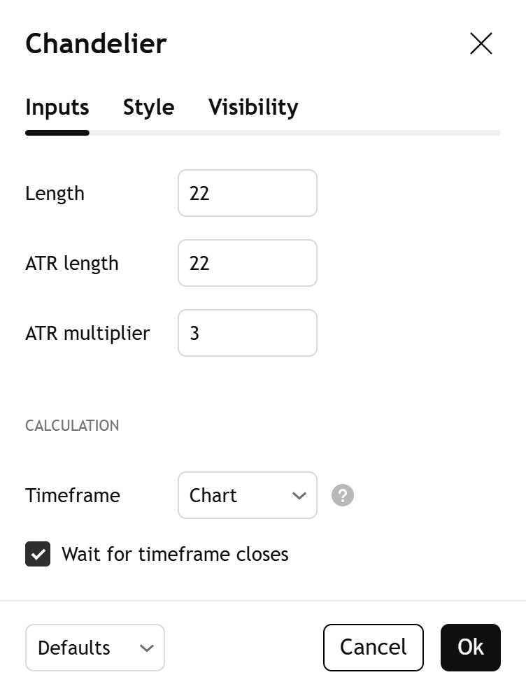 L'indicatore Chandelier Exit calcola due livelli di stop, uno per le operazioni long e l'altro per quelle short, individuando i prezzi massimi e minimi in un determinato periodo di riferimento, quindi aggiungendo e sottraendo multipli dell'ATR. Le formule per calcolare i livelli di uscita sono le seguenti: